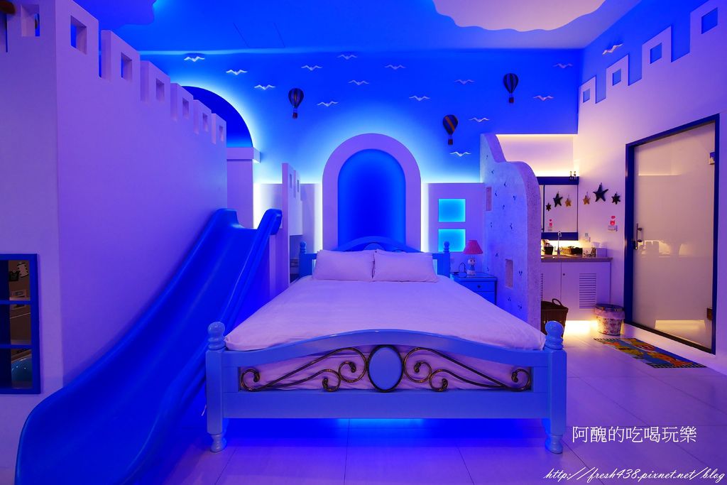 藍白色系搭配特殊燈光,