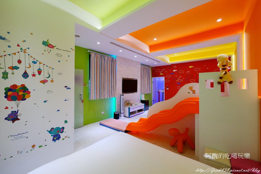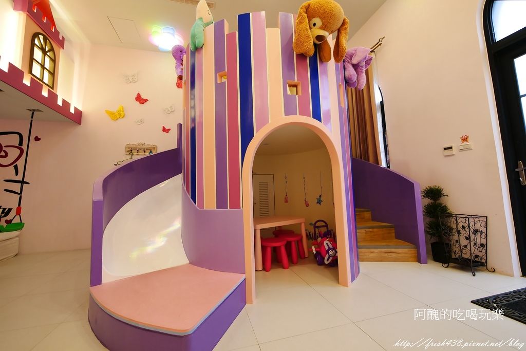 後棟則有最新型的親子溜滑梯房型。