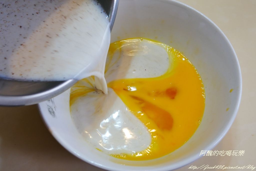 奶太燙的話,加入蛋中會變蛋花湯喔。