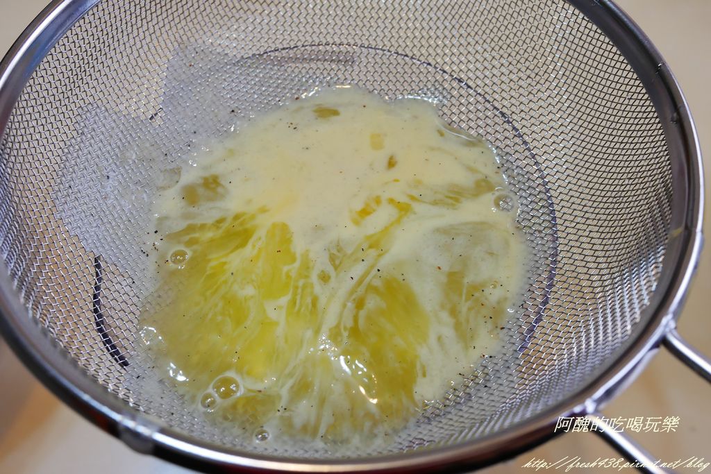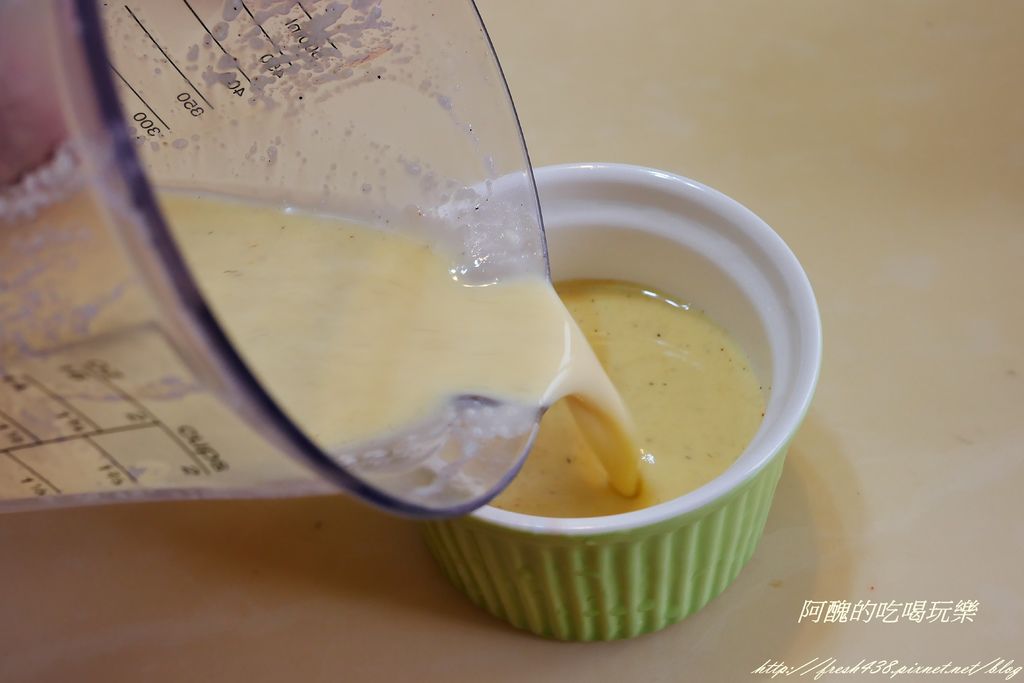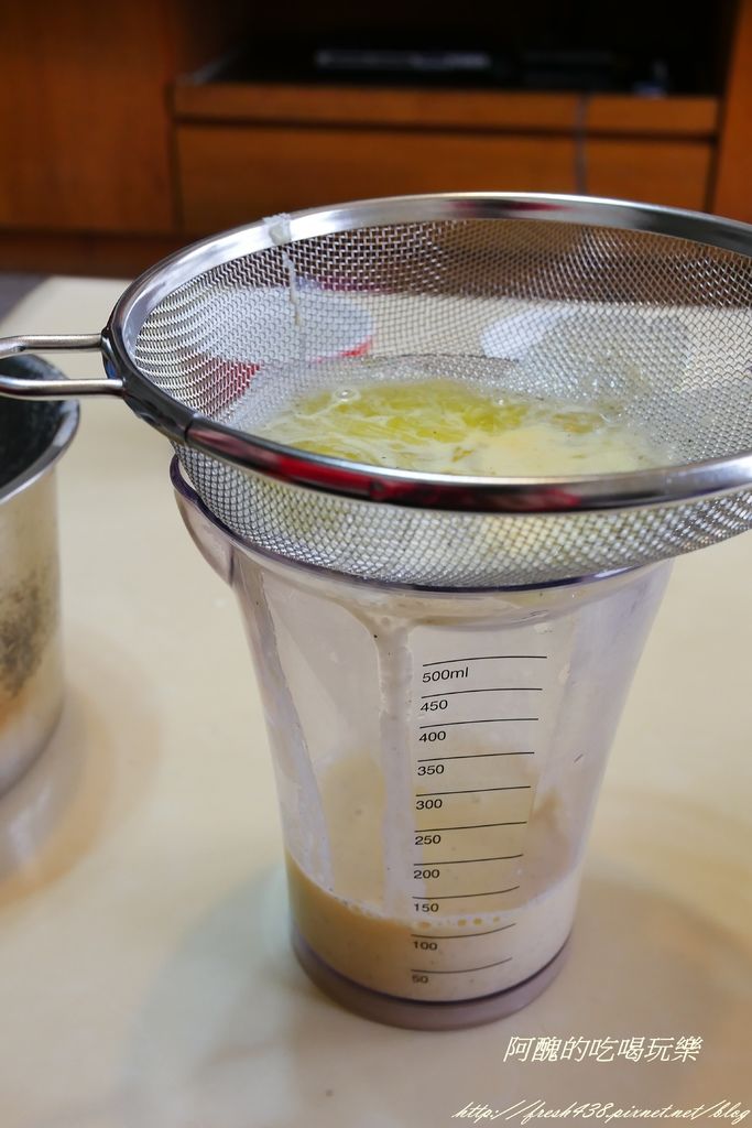 用篩網過篩一次,可以減少氣泡,幫助布丁更細緻。